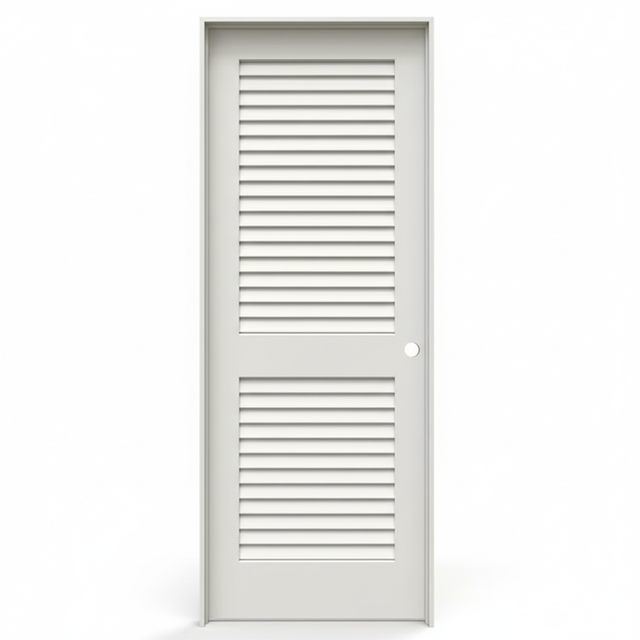 Builder Supply Outlet's Louver Doors feature a classic plantation louver style with beautifully crafted rails, combining the rich look of wood with the strength of MDF. This door enhances airflow while providing privacy, making it an excellent choice for closets, laundry rooms, or any interior space. Prehung in 4-9/16" primed FJP jambs, Its sturdy construction ensures durability and lasting beauty, blending function with timeless design to elevate your home's interior effortlessly.