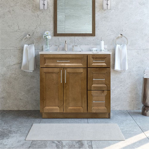 Prior Creek 36" Shaker Right Drawer Vanity in Toffee