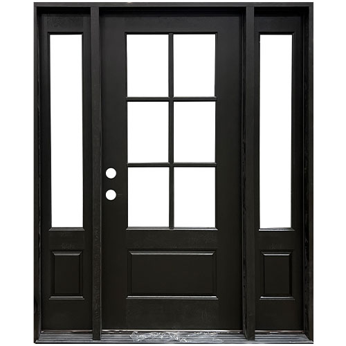 Replace your front door with this gorgeous new 6 lite 1-3-1 fiberglass prehung door in black! 36″ door with 14″ sidelights. This prefinished fiberglass door is 1-3/4″ thick and won’t warp, rot, dent or split. This door is equipped with an energy-saving, insulating, foam polyurethane core that reduces sound transfer. Hung in a composite 4-9/16″ door jamb with a left hand inswing. Fully weather stripped and has low-E insulated glass for energy efficiency! Get yours today only at Builder Supply Outlet!